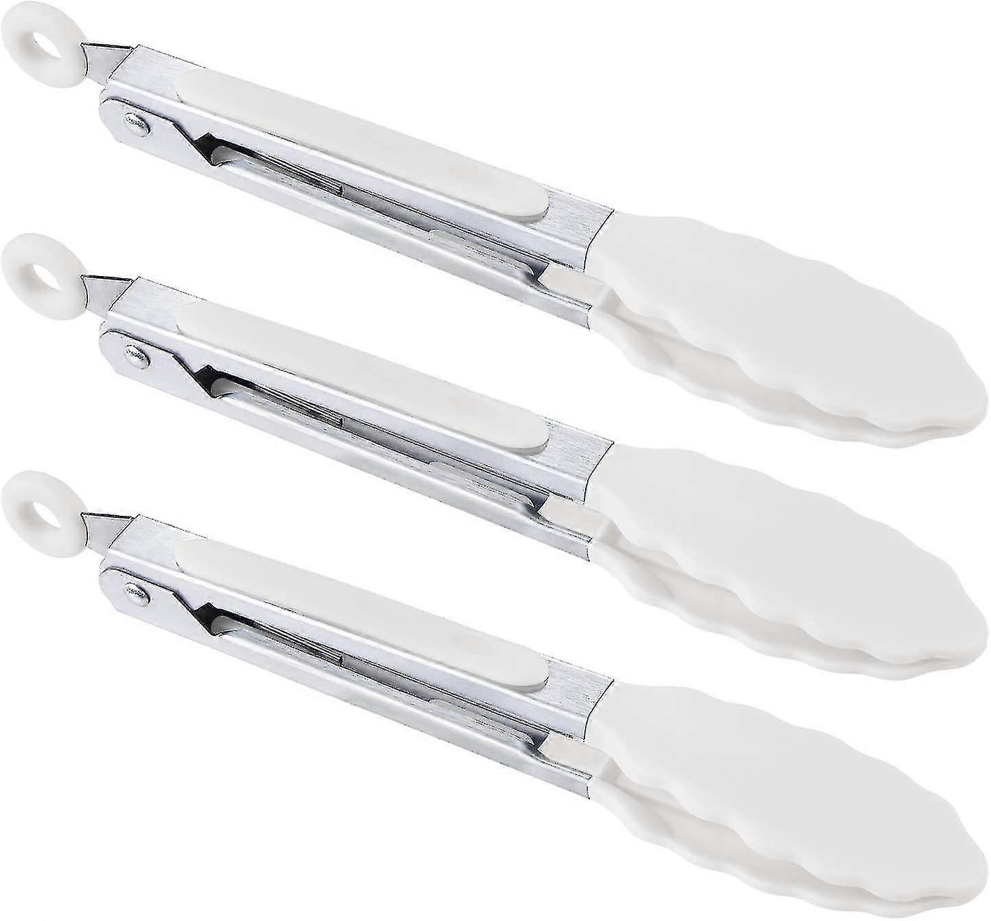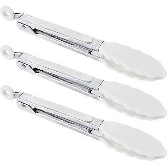 Kitchen Food Tongs - 7" Mini Silicone Serving Tongs - Set Of 3
