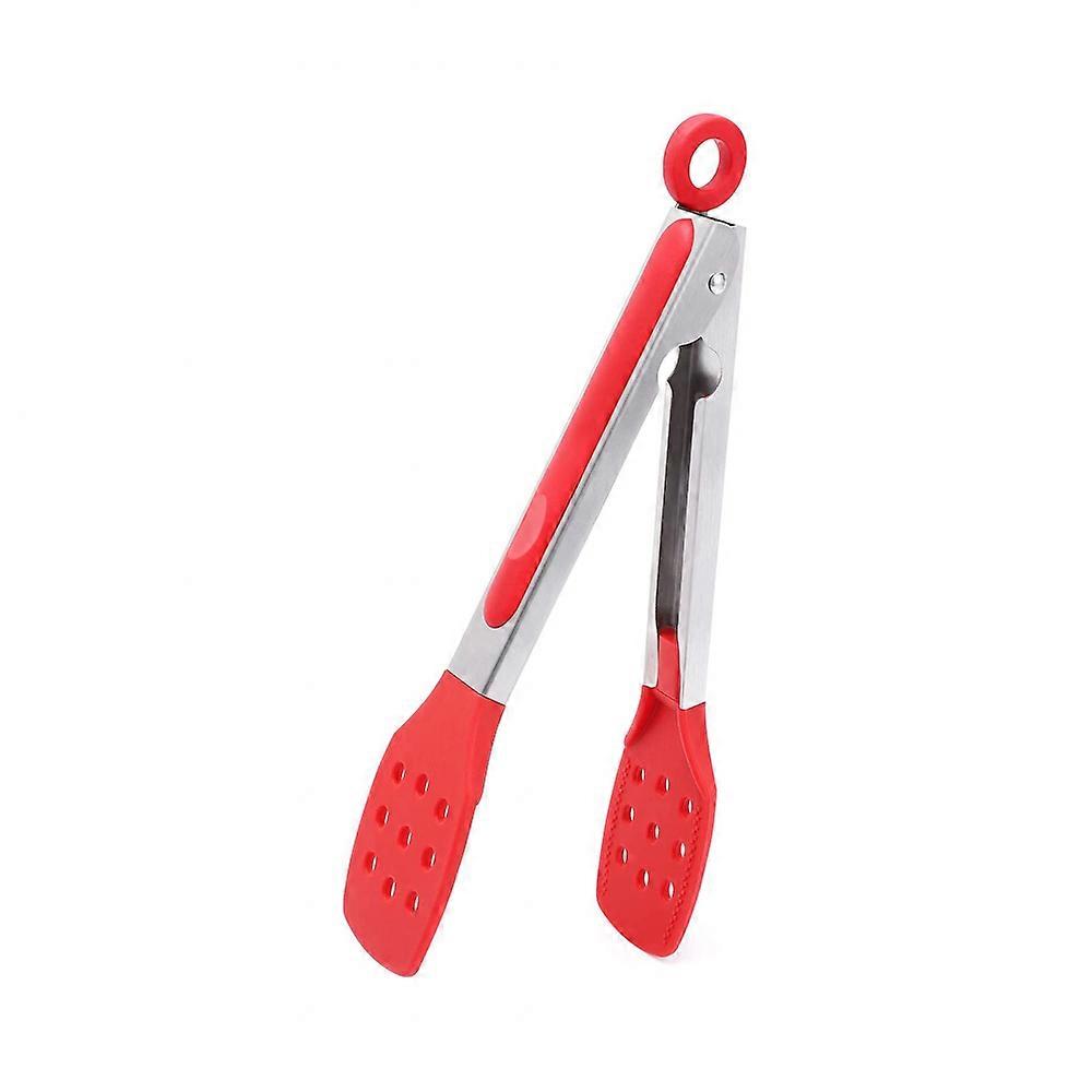9-inch stainless steel kitchen tongs with red silicone head, non-stick and heat-resistant, ideal for grilling, serving, or salad buffet