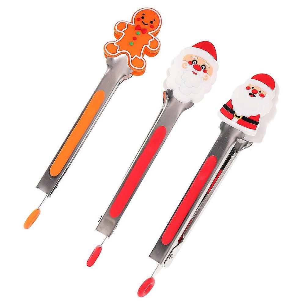Stainless Steel Food Tongs 3Pcs Christmas Kitchen Utensils Ergonomic Design Non-Slip Grip For BBQ And Party Use