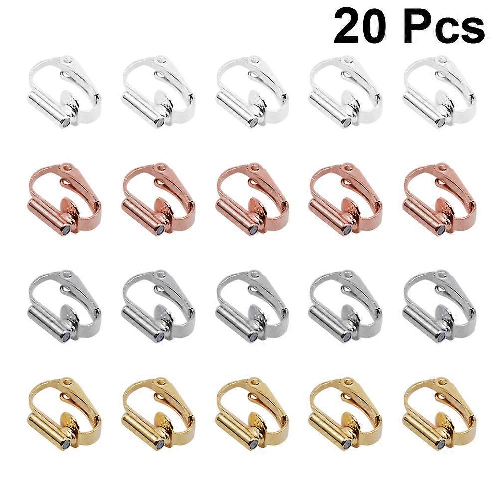 The package contains 20 pieces earrings converters, each color 5 pieces. A sufficient number to meet your different needs. The earring parts are made of brass and are plated on the surface, which is not easy to be allergic or faded. Feature - ColorAssorted Color - Material: Metal. - Size: 1.6x1.24x0.5cm. - The package contains 20 pieces earrings converters, each color 5 pieces. A sufficient number to meet your different needs. - Safe material: The earring parts are made of brass and are plated on the surface, which is not easy to be allergic or faded. - Fastening design: This earring converter is designed to be easily clamped and worn without wearing ears. - Perfect size: Small or thick ears, easy to wear or carry. - Practical application: Easily change earrings on ear or DIY beautiful earrings. Warm Tip: Dear buyer, due to lighting effect, monitor’s brightness, manual measurement and etc, there could be some slight differences in the color and size between the photo and the actual item. Sincerely hope that you can understand! Thank you! Package list: 40 x ear clips converters