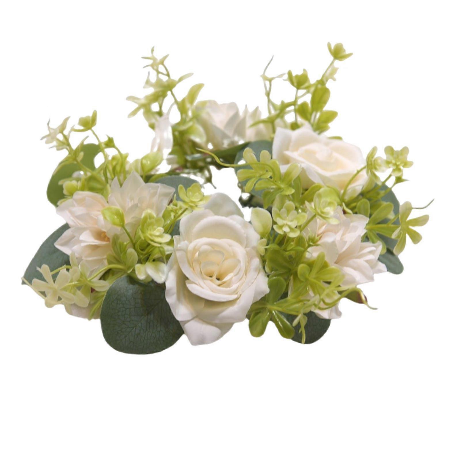 Menorah Garland Candle Rings Silk Flower Wreath Garland for Wedding Lifelike Pillar Candle Holder Home Door Tabletop Decor