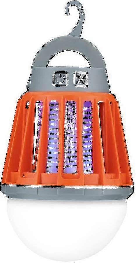 Mosquito Killer Lantern: This is a 2-in-1 unit that can be used as a zapper to kill mosquitoes and as a lantern to light it. With the extendable hook and detachable lampshade, the zapper lantern physically kills mosquitoes and other biting insects, which is much cleaner and safer than its chemical counterparts. Adjustable Brightness: The camping lantern has 4 brightness levels different lighting modes and offers you 4 different brightness levels. A detachable lampshade brings you soft light. It is designed to be placed either way - you can hang it from a string or branch, or stand it upside down like a floor lamp. IPX6 Waterproof Rating: The camping light is weatherproof and can be submerged in water, exposed to rain and cold, illuminating your tent at night. You can clean the lantern under running tap water. Insect residue can be easily eliminated. Light Options: This special mosquito killer lamp has 4 lighting options. The low setting emits 20% of the lamp's light. The middle level emits 50% of the lamp's light. There's also a high setting that shows 100% light. The mosquito zapper setting may be the best setting for this lamp. The lantern is only 5 inches tall and 3.5 inches wide, weighs only 210g/0.46lb, so it is easy to carry. Rechargeable Battery Keeps the Bugs Out All Night: The rechargeable 2000mAh lithium ion battery feeds an ultraviolet light with a wavelength of 360nm to 400nm that creates a 16ft x 16ft area of protection. The mosquito repellent lasts up to 15 hours, while the lowest setting in the three settings for the lantern can last up to 20 hours. Note: 1. Do not look directly into the LED as this may cause eye damage. 2. Although the power grid has a protective fence, you must not touch it. To avoid accidents, you must keep it out of the reach of children. 3. Remember not to immerse the zapper in water for a long time as this may damage the product. 4.Turn off the device when cleaning the zapper. Product features: 1.USB charge 2.Kill mosquito 3. Night Light 4. Waterproof IPX6 5. Lightning protection 6.easy to carry Placement position: 1m above the ground, 2m away from the human body Product Specifications: High Light (100% illumination) 180 lumens, 6h Normal Light (50% illumination) 90 lumens, 12h Low light (20% illumination) 30 lumens, 20h Effective UV range: 16ft x 16ft Weight: 210g / 0.46lb p> Dimension: 3.46" x 5.08" Zapper only mode 15h Voltage input: 5.00.2V Current input: 900mA 100mA Full charging time: 2~4 hours (depending on input current) Battery: 3.7V / 2000mAh Zapper Voltage: 1000 V Scope of delivery: 1 x mosquito zapper lantern