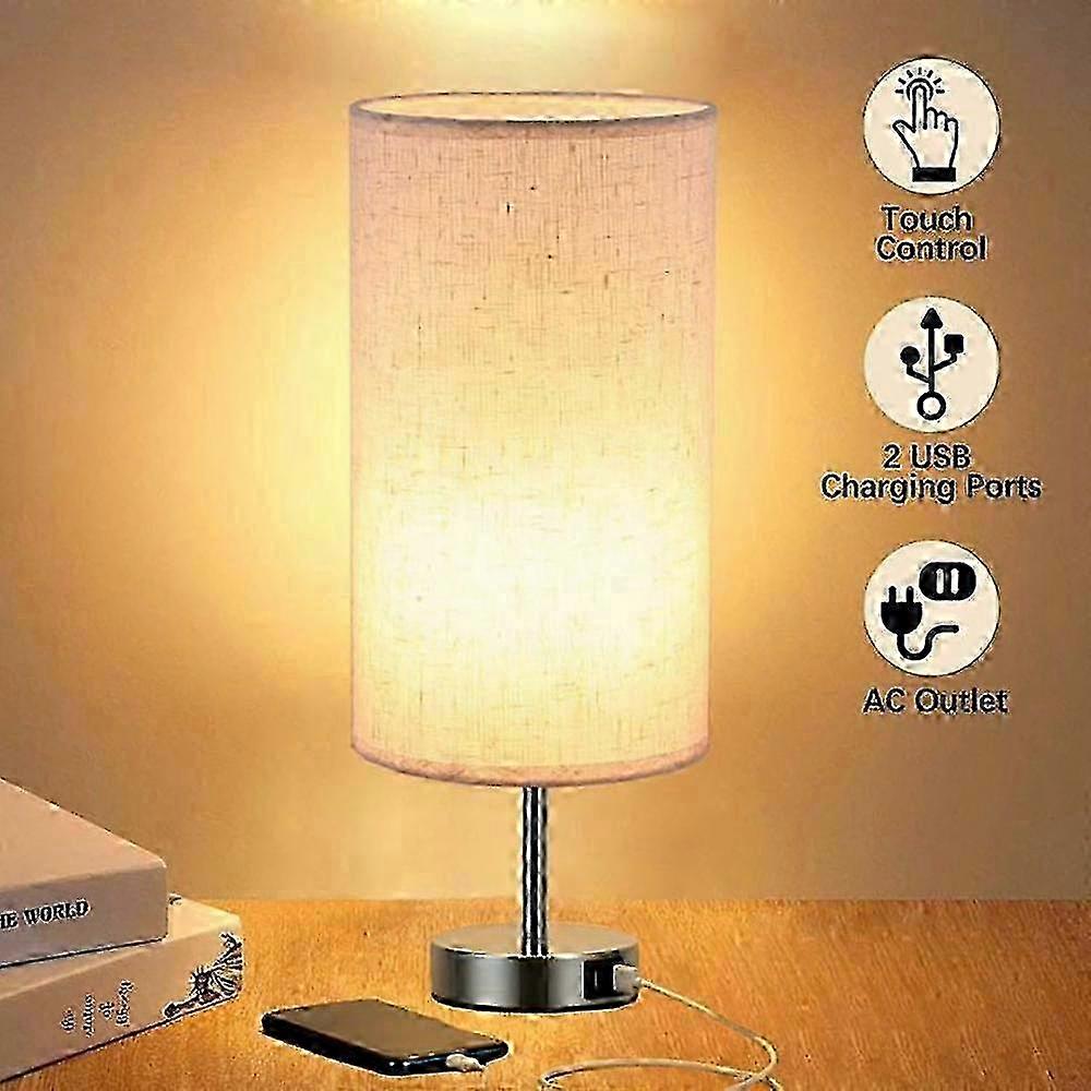 Modern Table Lamps Faux woodgrain fabric shade Dual USB ports bedside touch 3-speed dimmable table lamps Study living room table 25-26