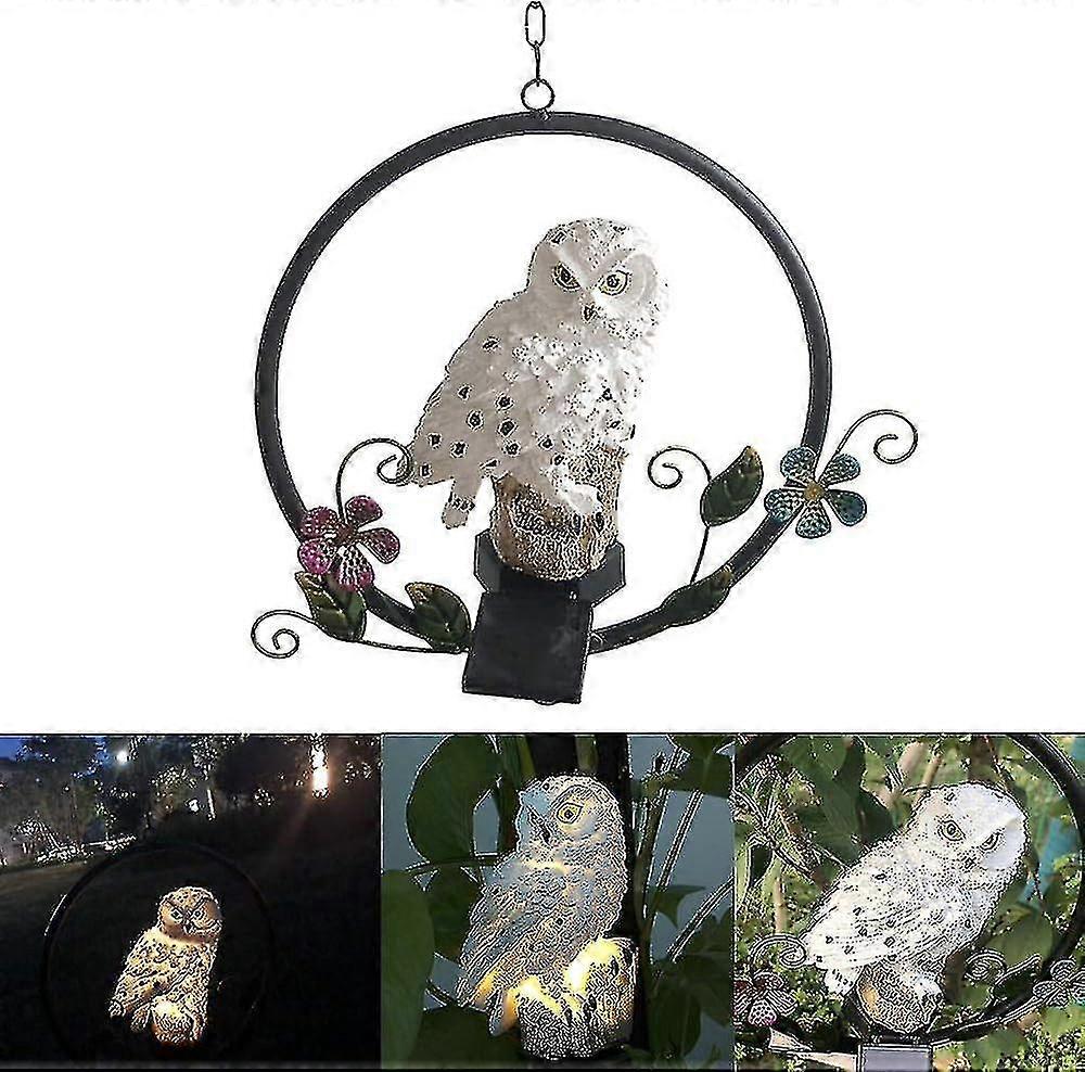 Realistic Owl Design: Like a real bird, be amazed by this realistic owl fashion due to its almost real design and size. Destructive animals will surely be threatened by this garden pest control owl.^ Solar Power & Metal Hook: With the light sensor system, the high conversion solar panel works well and can provide adequate electric power. Automatically illuminate the owl at night. With a metal hook on the top, it can be easily installed on the wall, tree branches, eaves, etc. Battery: built-in 1.2v 600mah battery. Working time: 8-10 hours. Charging time: more than 6 hours.^ Two Light Mode: The owl landscape light adopts LED luminous bead, compared to its special shade shape to provide a soft decorative and auxiliary light effect. There are two lighting modes with different brightness for you to choose according to practical situations.^ Waterproof and Sun Resistant: IP44 waterproof function does not scare it on rainy days and other kinds of bad weather. The owl landscape lamp is perfect for outdoor use. (Please do not immerse the light in water.)^ High Quality: Made of high quality resin, stainless steel and plastic material, the owl landscape light is tough, tough, corrosion-resistant, wear-resistant, durable and sturdy, possessing a long life of life.