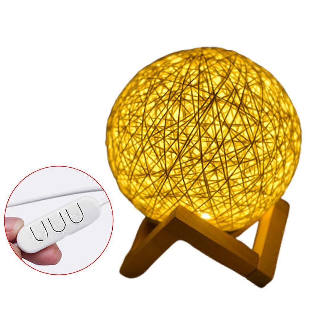 LED Rattan Ball Lamp, LED Projector Night Lamps Night Light, USB Table Lamps for Home, Bedroom, Office, Reading, Bedside Yellow button