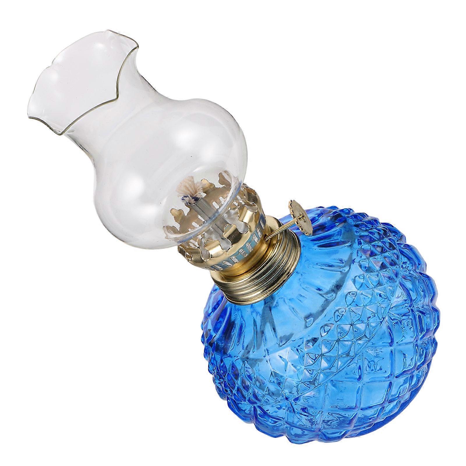 The retro oil lamp is designed for both aesthetic appeal and practical use. With its adjustable flame, you can easily control the brightness to suit your needs, whether you're using it for ambient lighting in the dining room or as a night light in the bedroom. The lamp's vintage charm makes it a unique decorative piece that enhances any interior setting. Features - Color: Blue -Material:Glass+Iron - Size: 18.50X9.00X9.00cm/7.27X3.54X3.54in -Charming retro style: the vintage oil lamp's distinctive retro style enhances the ambiance of any room, adding a touch of elegance to your home decor -Reliable emergency light: practical for emergencies, this vintage oil lamp ensures you have a dependable light source during power outages, keeping your household safe - and : designed for longevity, the vintage oil lamp offers consistent and lighting, reducing the need for frequent lamp replacements -Decorative and functional: this oil lamp serves as both a functional lighting solution and a decorative item, making it a versatile addition to your living room or bedroom -Cozy light: the vintage oil lamp emits a gentle light, ideal for use as a night light, creating a warm and inviting atmosphere for restful sleep Package list: 1 x vintage kerosene lamp