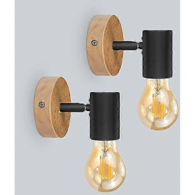 Retro Wall Lamp, Set of 2 Indoor Wooden Wall Spotlights E27 socket, Industrial and adjustable wall lamp for bedroom, living room, hallway, staircase,