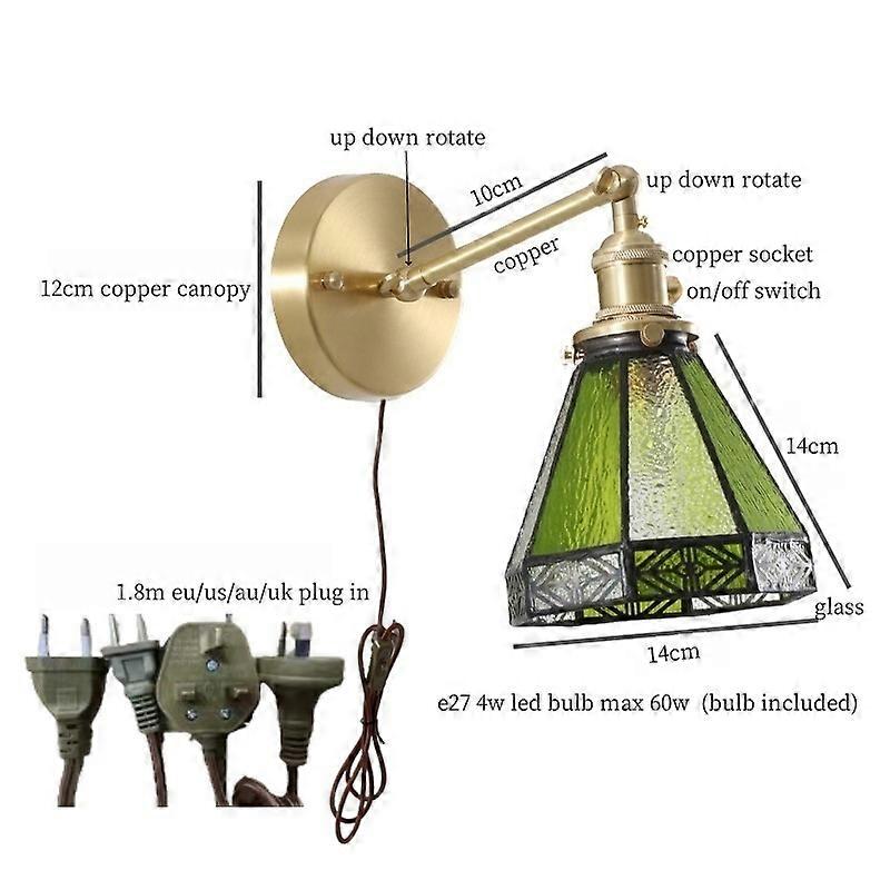 Colorful Vintage Glass LED Wall Lamp with Switch Pull Chain Living Room Bathroom Mirror Bedside Lamp Tiffany Wall Lighting