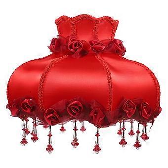 Table Lamp Lampshade European Vintage Cloth Art Bead Lace For Dining Room Red 12.6X12.6X9.1in Decorative Diffuse Lighting 1Set