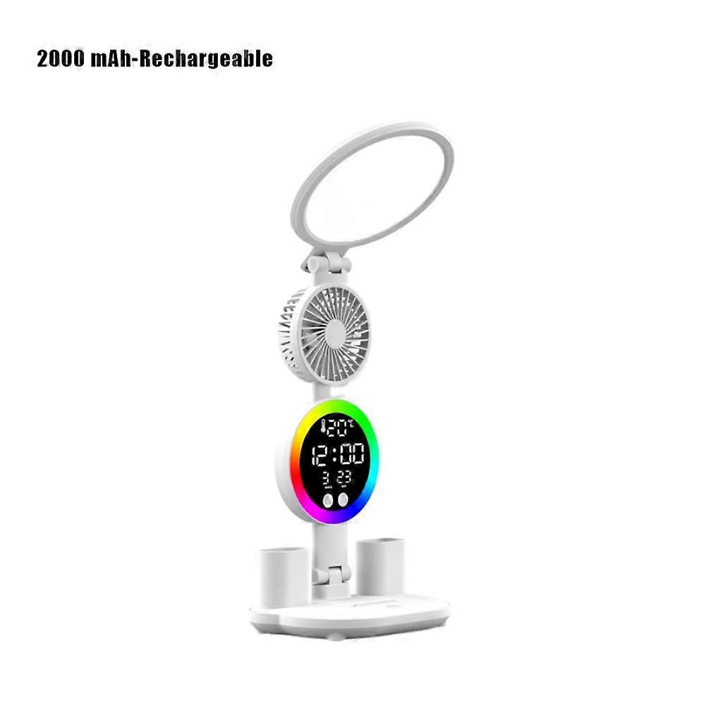 For Study Desk Lamp with Mini Fan Digital Clock USB Charging Eye-Protecting LED Light for Students Office