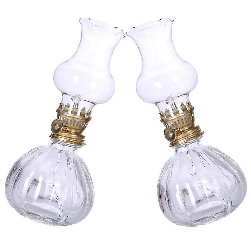 Oil Lamp Hurricane Lamp Lantern for Outdoor Use 2Pcs Glass Metal