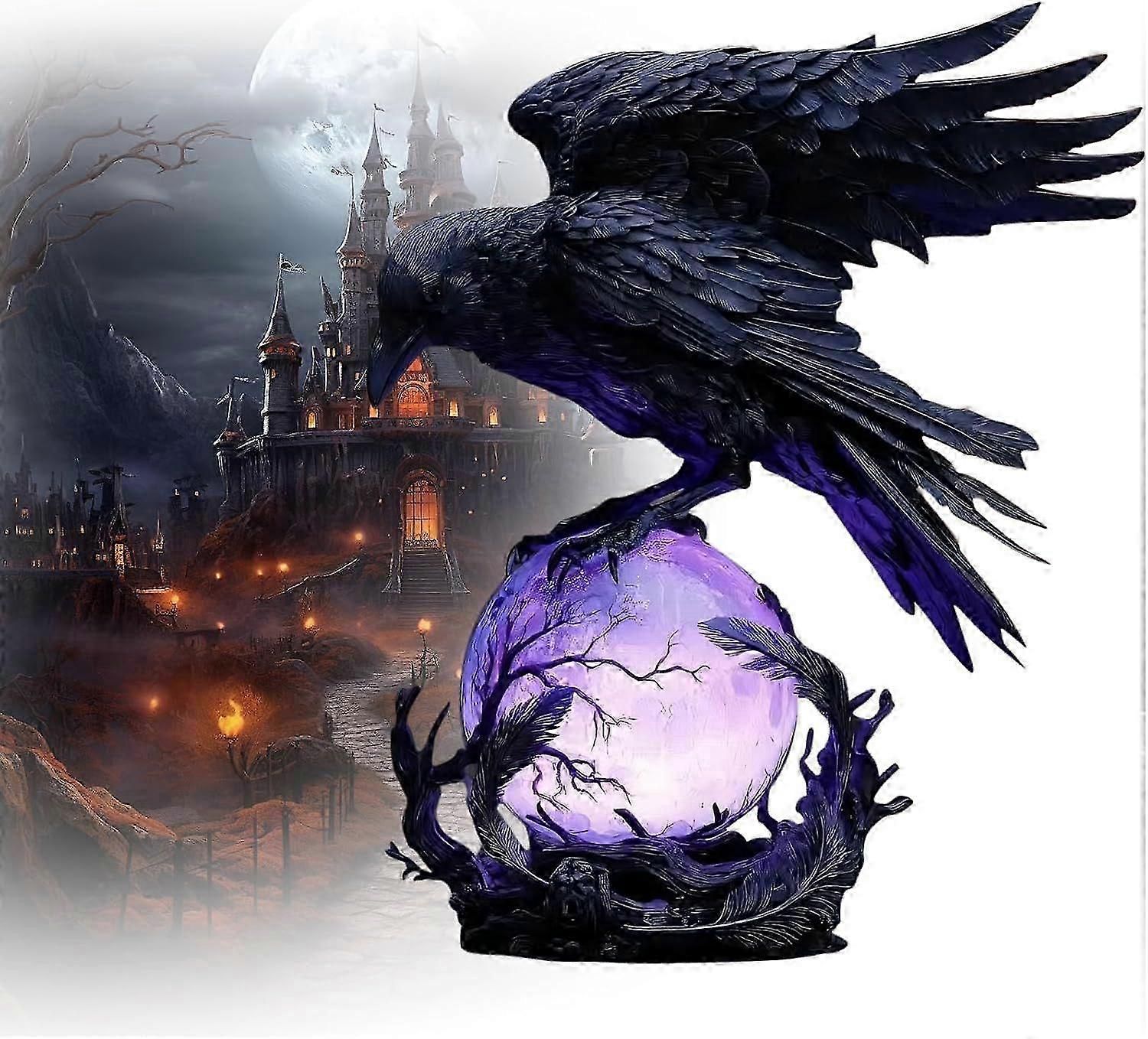 Gothic LED Lamp Raven on Glowing Orb with Violet Light, Fantasy Home Decor, Unique Gift for Gothic Collectors, Halloween Enthusiasts, and Book Lovers