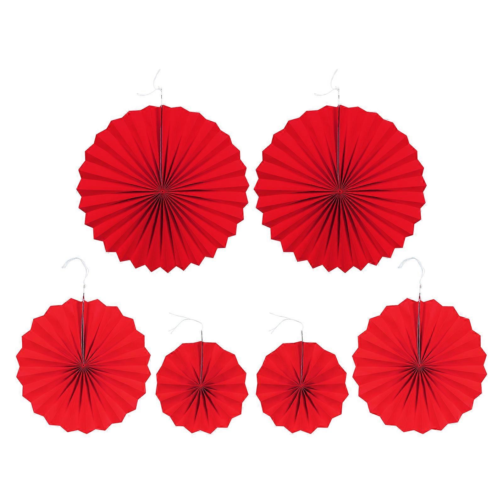 Party Paper Fans 6 Pcs Red Round Paper Folding Fan Flower Decor For Wedding Celebration Events