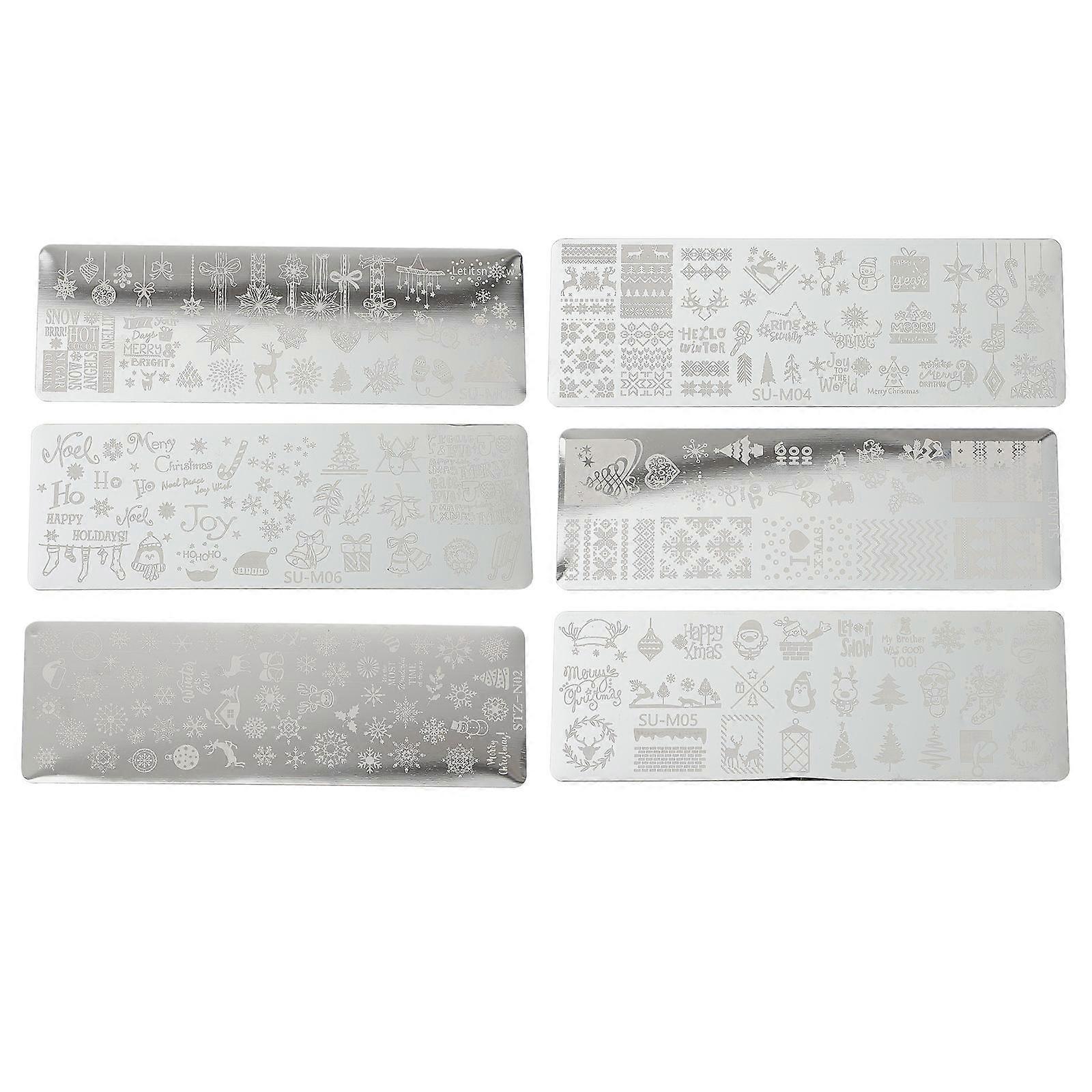 Manicure Nail Plate Christmas Celebration Travel Use Nail Design Stamp 12X4X0.2CM 6Pcs