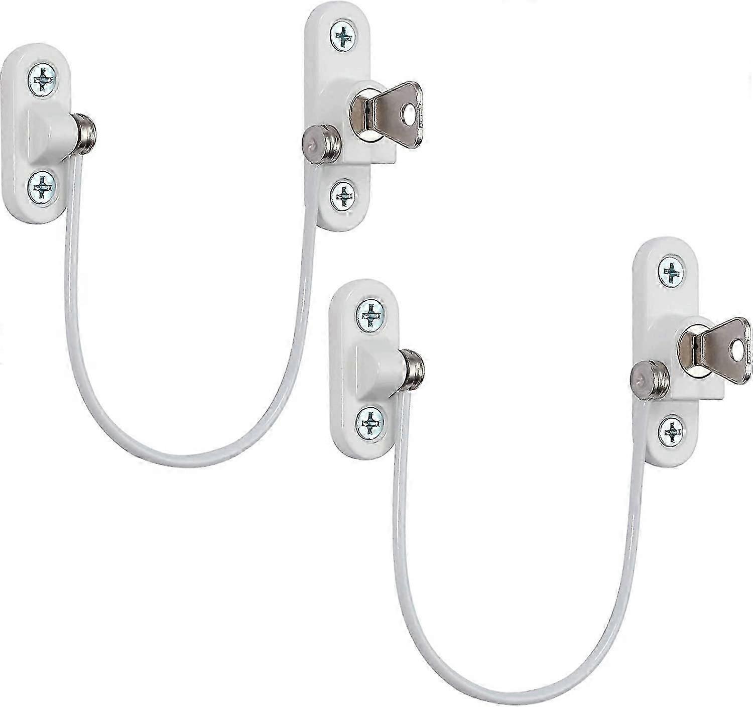 Furniture Door Window Safety Lock-2Pcs with Key White Cable Restrictor 190mm-Baby Child Safety Cable