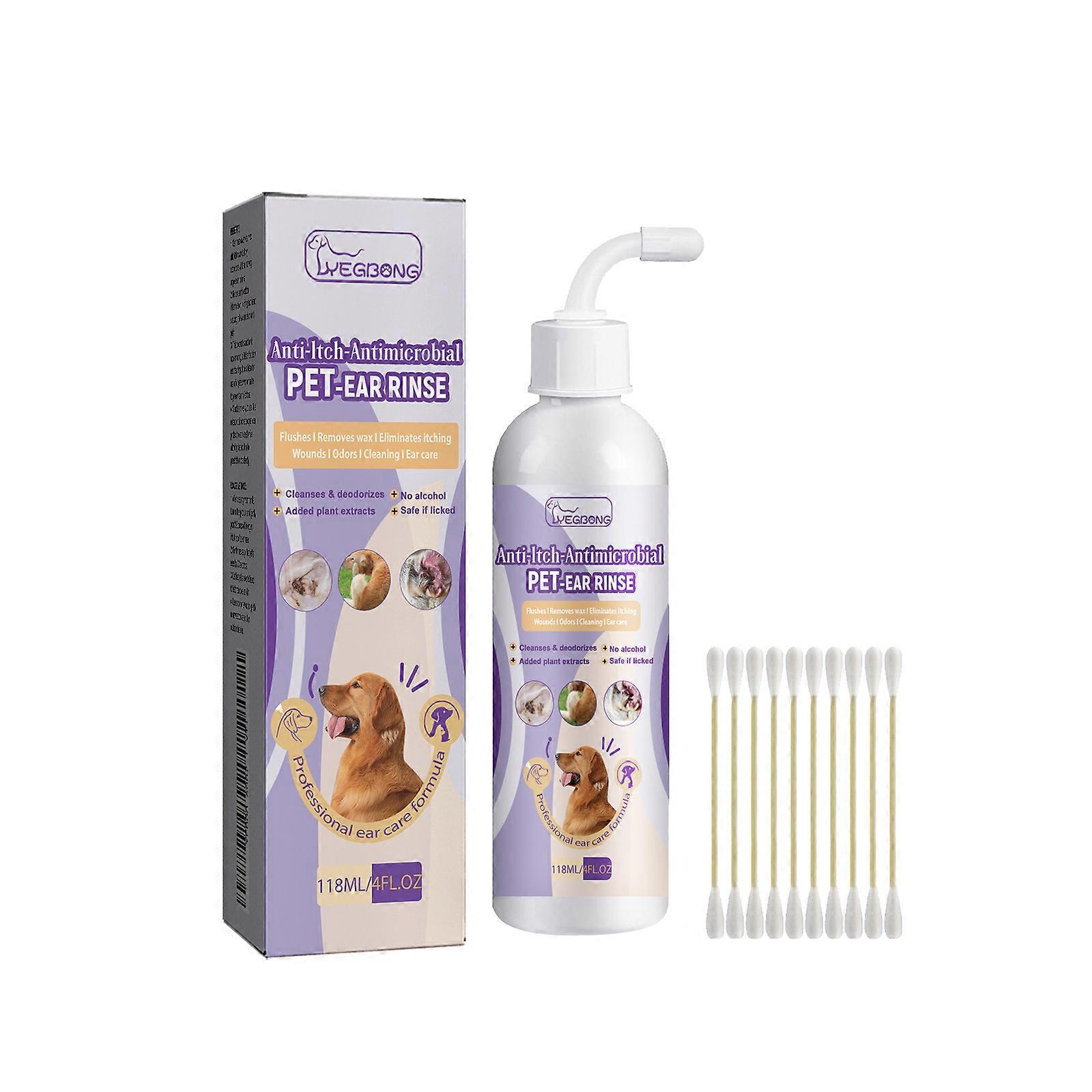 Dog Ear Cleaner, Ear Infection Treatment For Dogs Cats, Eliminates Ear Odour Removes Wax Dirt, Soothing Itchy Inflamed Ears 118ml 10pcs cotton swabs