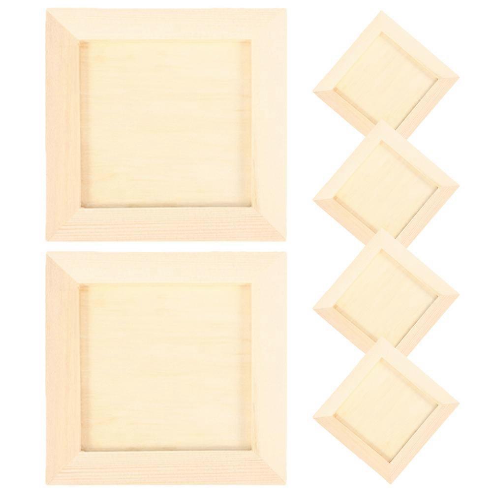 Picture Frames Wood Unfinished Photo Frame For Diy Projects Home Decoration Square Shape Assorted Color 6Pcs