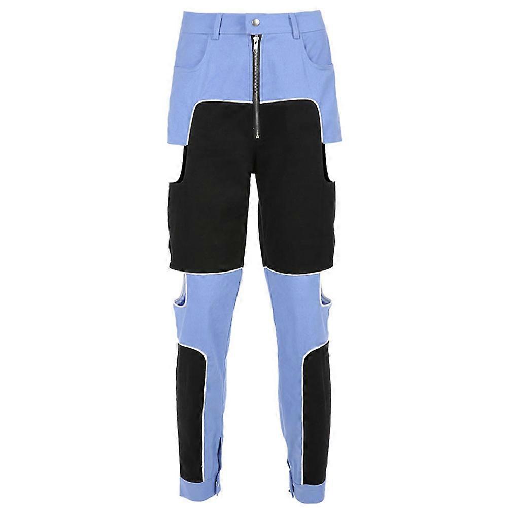 Stylish Women Contrast Color Hollow High Waist Zipper Casual Trousers Pants(M)