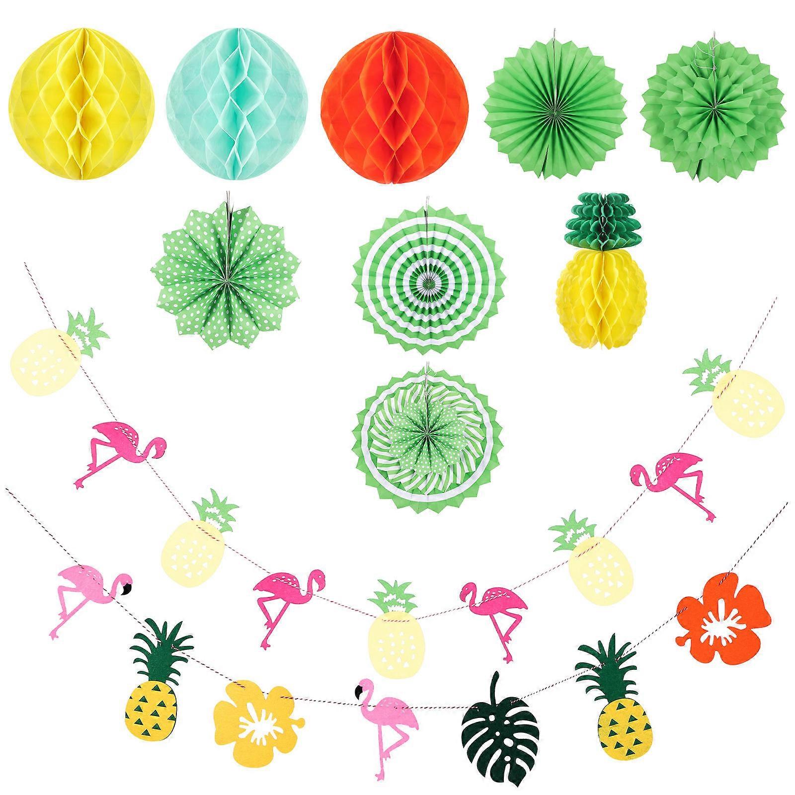 Theme Party Supplies Hawaiian Ornaments Stylish Pull Flag Rosy Paper Flower Set For Adults Party Favors 25x25x25cm 1Set