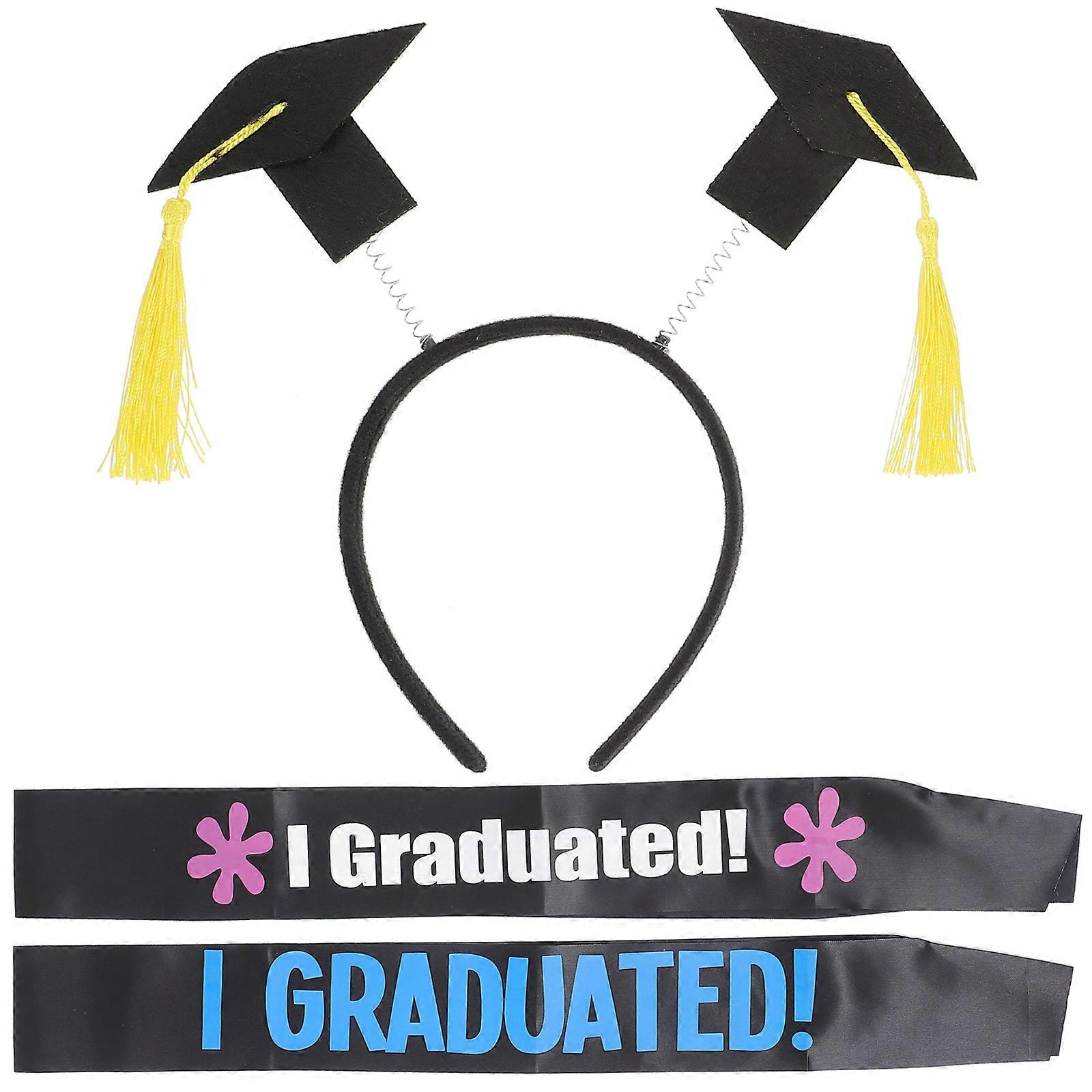 Graduation Party Hairhoop and Sash Set Unisex Design Black 25X24CM 1 Set Celebration Accessory