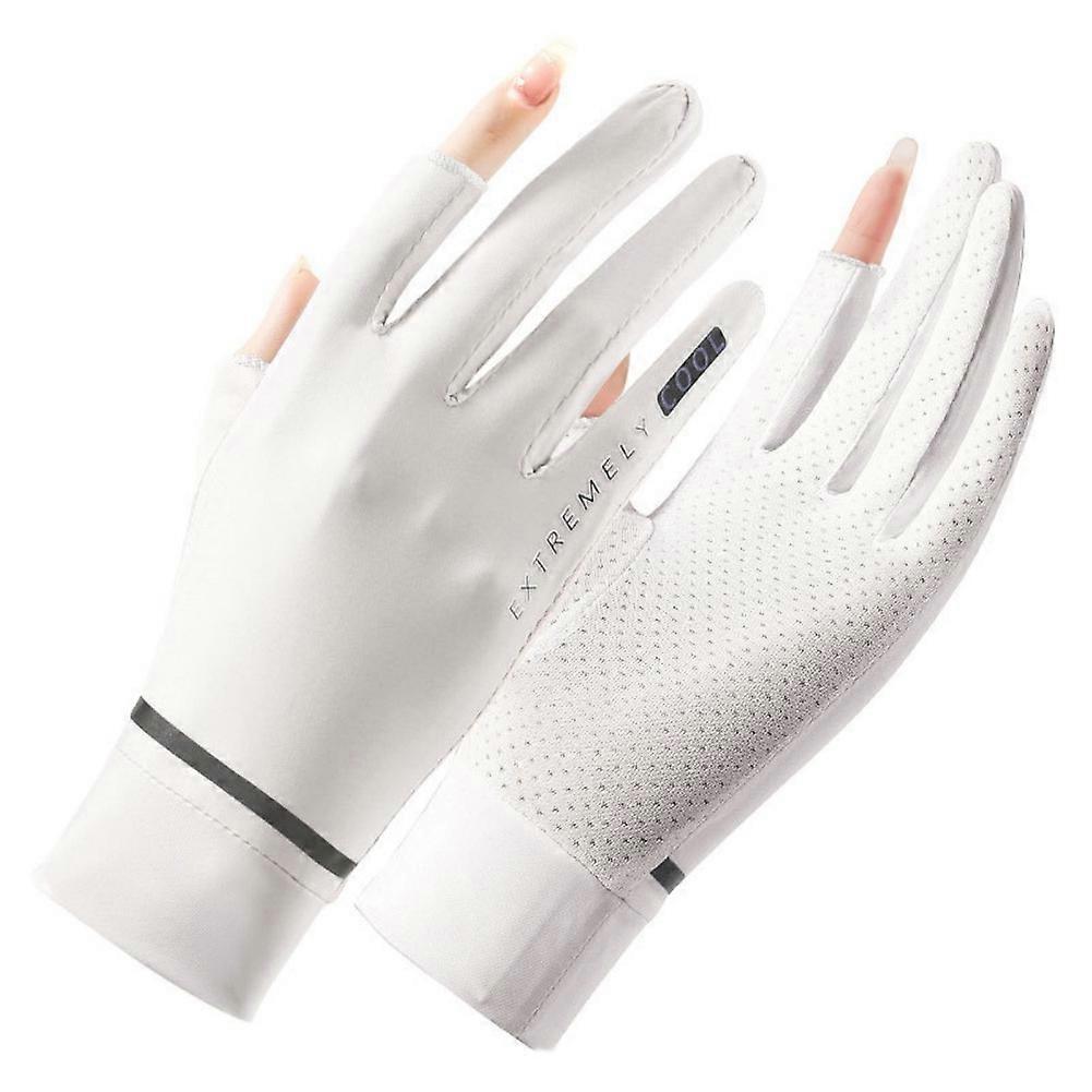 Specifications: Product Name: Summer Ice-Silk Gloves Product color: pink/black/white/blue Style: two fingers / full fingers Application: driving, leisure, fishing, cycling, etc. Size: one size Glove length: 22.5cm Middle finger length: 8cm Suitable for palm circumference: 17-21cm Features: The gloves provide long-lasting and effective sun protection, cool and soft and skin-friendly, providing sun protection and cooling to the skin under the hot sun. Mesh tactile fabric has a good heat conduction and moisture removal function, which is specially designed for the cool body feeling experience in summer. The mesh material on the palm effectively improves the grip and friction of the hand when wearing it, which is convenient for driving and riding. The forefinger thumb touch screen material and the fingerless design are available, which can effectively meet the needs of the touch screen and facilitate the use of electronic products without frequently taking off gloves. Ice-silk gloves will keep you comfortable whether you’re cycling, hiking, running,walking dogsm,golf, fishing, driving and so on.Great hand protection when you working outside or doing any outdoor activities. Package Included: ​1 Pair x Gloves Note: 1.Please allow slight size deviations due to manual measurement,measuring methods and tools. 2.The picture may not reflect the actual color of the item because of different photographing light and display monitor.Thanks for your understanding.