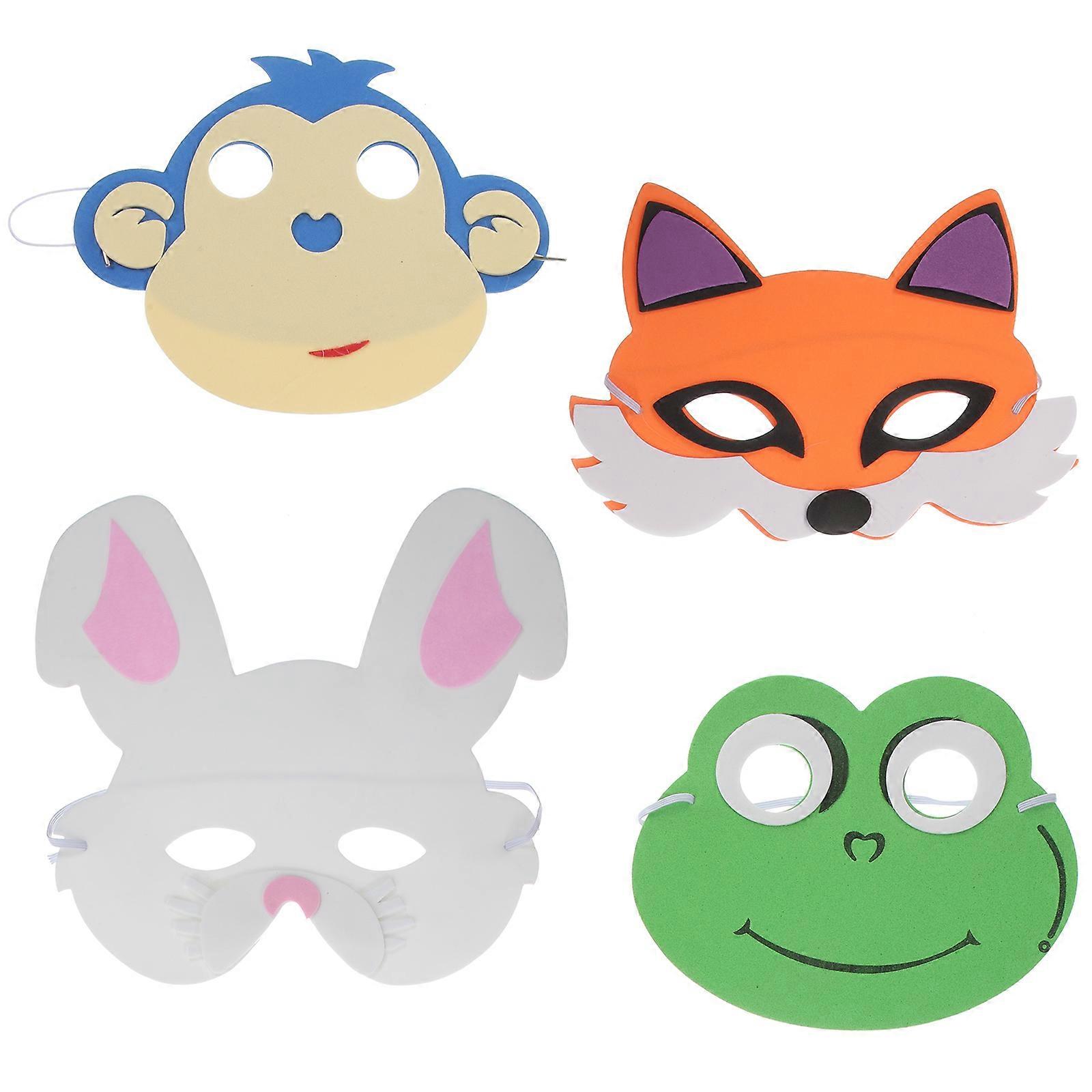 Cartoon Animal Masks Set of 4 – Monkey, Frog, Rabbit & Blue Monkey EVA Half Face Masks for Halloween, Birthday Decorations & Costume Parties