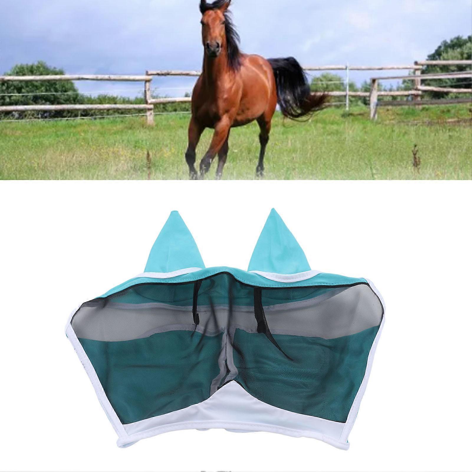 Horse Fly Mask Breathable Comfortable Soft Fine Mesh Design Horse Face Mask Horse Supplies with Ears Blue