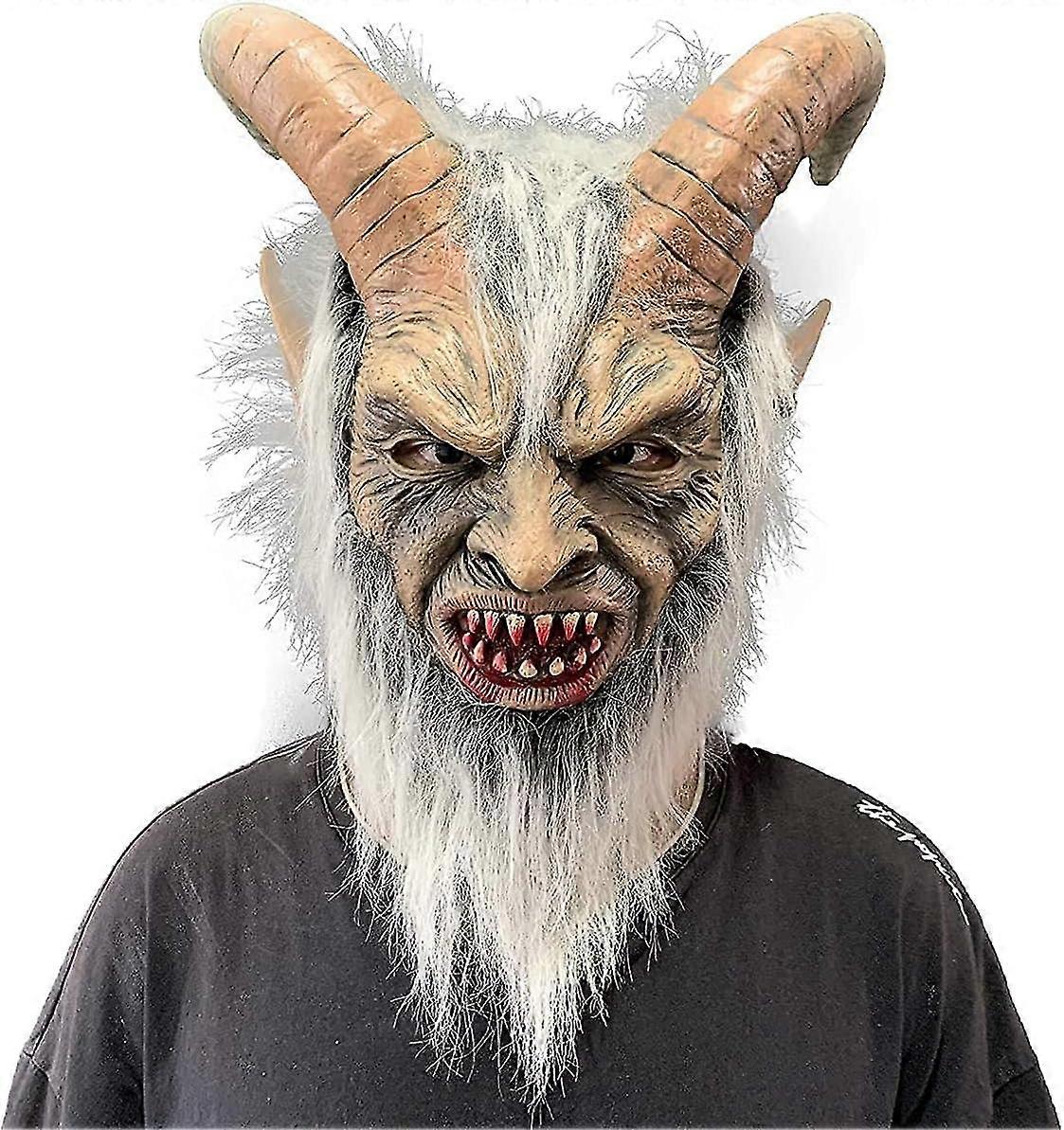 Lucifer Mask With Horns Scary Devil Krampus Masks Halloween Cosplay Costume Props