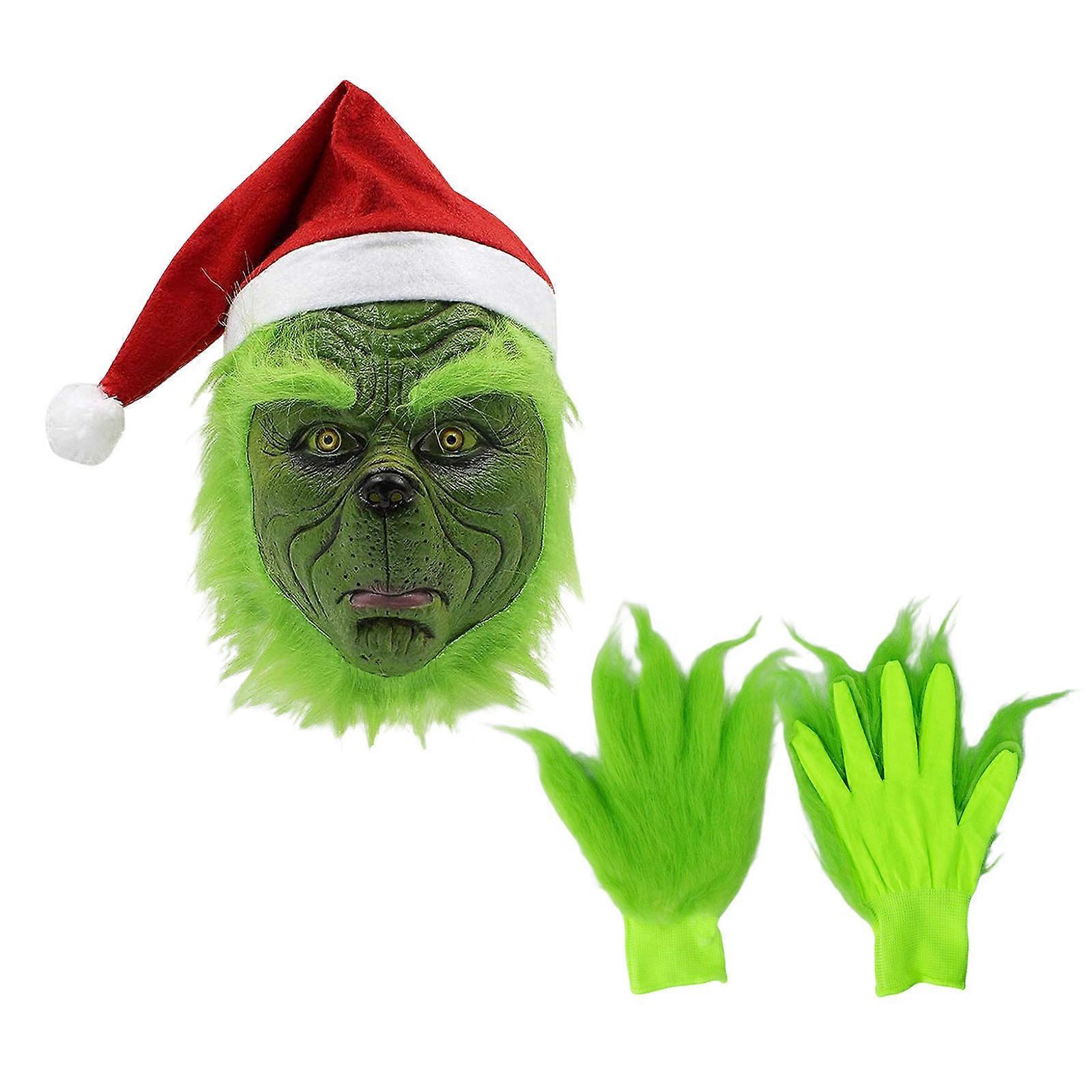 Christmas Green Monsters Mask Latex Cosplay Mask Gloves Santa Clauses Christmas Costume for Halloween Party Cosplay Multicolor