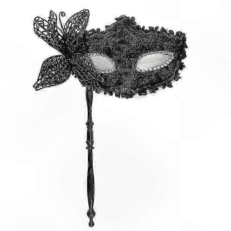 Halloween Masquerade Mask with Stick, Venetian Half Face Mask for Women, Evening Prom & Cosplay Props