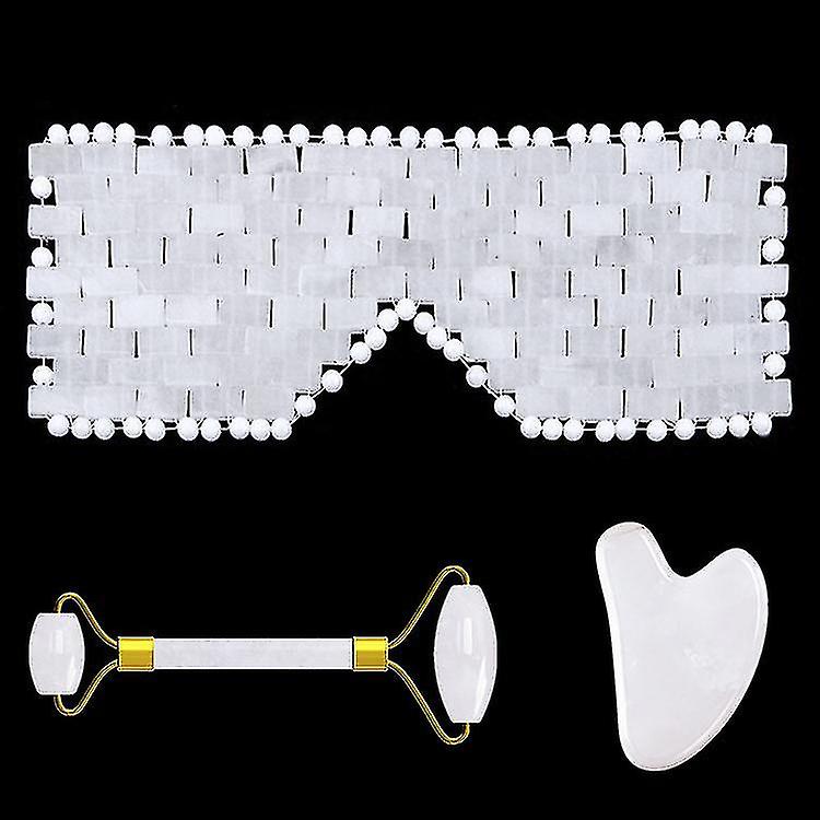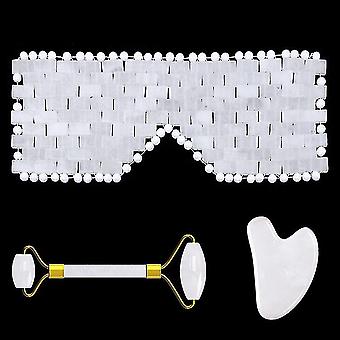 Jade Eye Mask Face Massage Roller Guasha Scraper Set 100% Natural Crystal Stone Sleeping Masks Skin Care Tool Roller Massager