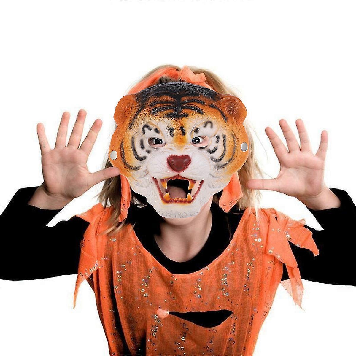 Tiger Face Shape Mask Halloween Masquerade Prop Multi 22x20.5x0.5cm Costume Accessory 1Set