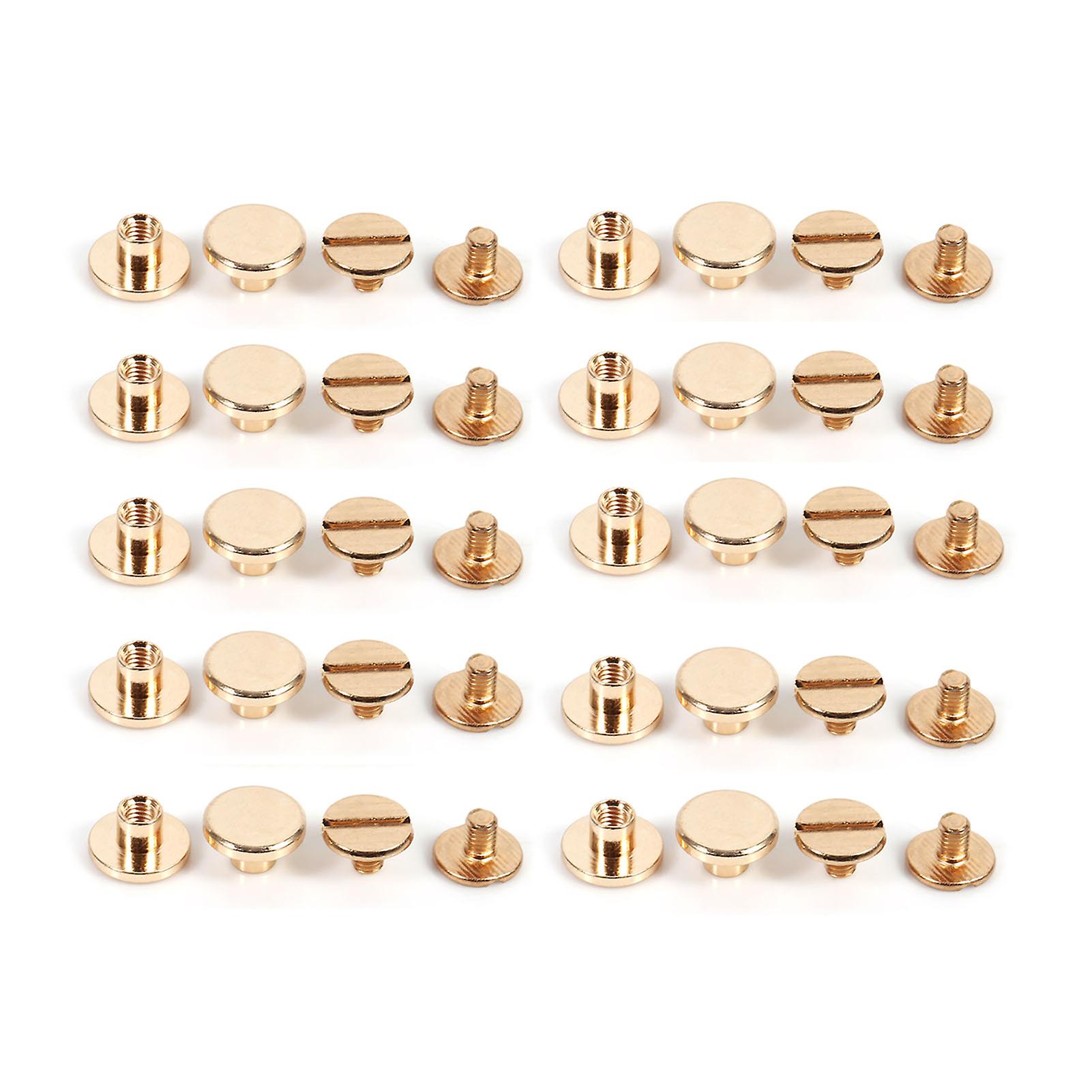 Solid Brass Button Stud Screw Nail 5mm 6.5mm 8mm for Leather Belt, Gold Screwback Fastener for DIY Leathercraft Repair