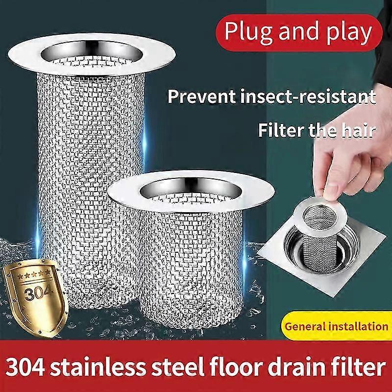 Description: Material: 304 stainless steel Color: silver Weight: about 18g Dimensions: SS- 28x40mm, SL- 28x80mm, LS- 36x40mm, LL- 36x80mm Specifications: Free-Flowing Drainage: It can effectively catch hair and any debris, ensure smooth and fast drainage function, and prevent blockage. Fine Mesh Filter: The stainless steel fine mesh filter effectively catches hair, toys, rings, necklaces, food residues, sundries, debris, etc., and prevents sewage worms, cockroaches, and rats from crawling out. Make your life easier! Durable and Reusable: Using thickened 304 stainless steel material, it is rust and corrosion resistant, sturdy, and durable. It can be reused for many years. No more frequent replacement of floor drains. Widely Used: Available in a variety of sizes, suitable for 99% of floor drains and sinks, such as kitchen sink, bathroom sink, floor drain, water pipe, etc. Easy to Use: Plug and Play. Just measure the diameter and depth of the sink or floor drain, select the corresponding size, and install it directly. No need to assemble or disassemble anything. Package Included: 1 Multifunctional Stainless Steel Floor Drain Filter