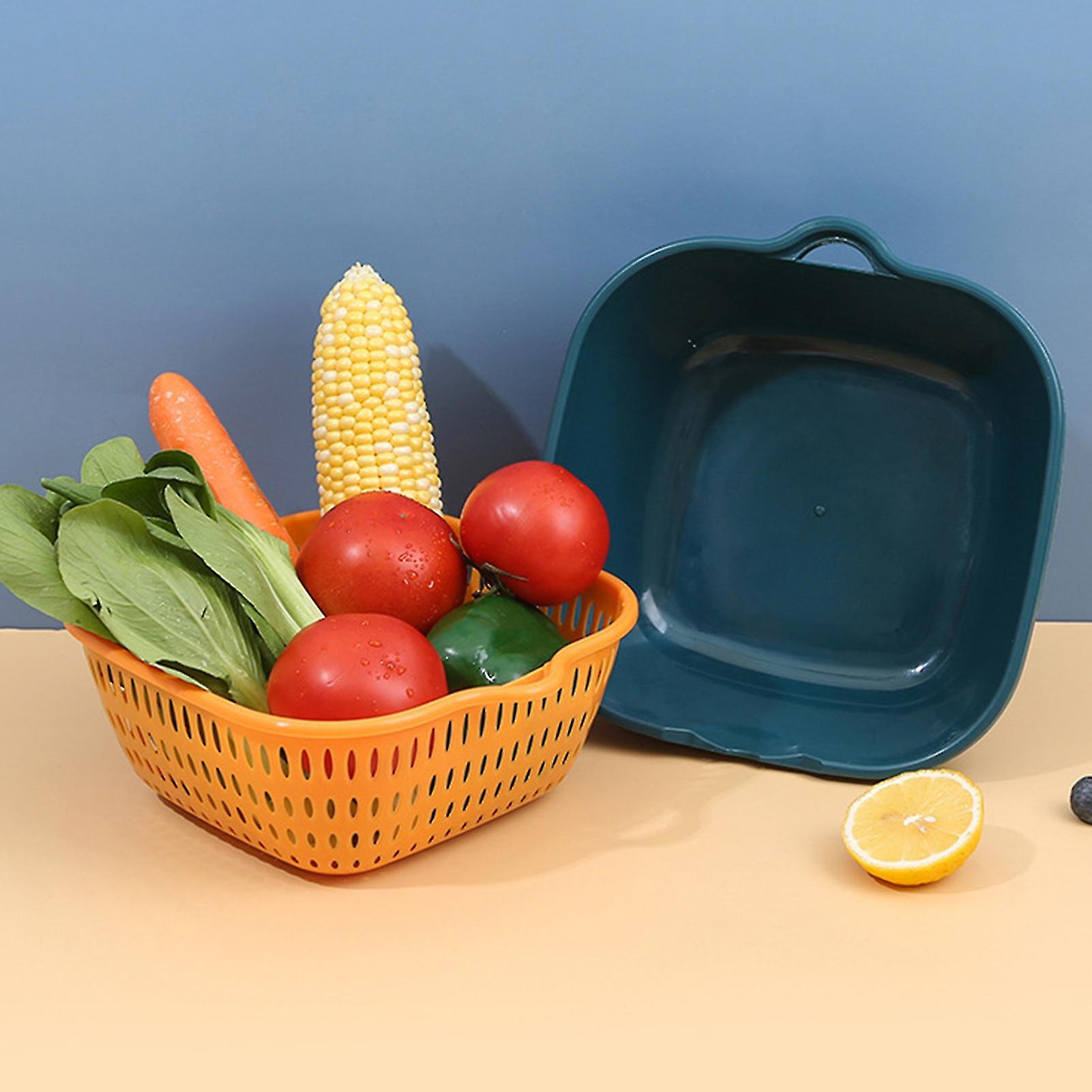 Fruit Vegetable Colander Multi Layer Kitchen Washing Strainer Basket with Hanging Hole for Fruits Vegetables Blue Yellow20x18x8cm / 7.9x7.1x3.1in