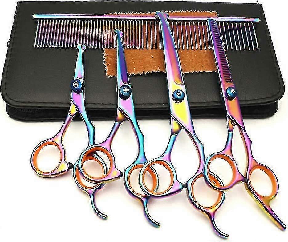 Pet Scissors with Safety Round Tip Including Thinning and Curved Scissors, Ideal for Grooming Dogs and Other Pets