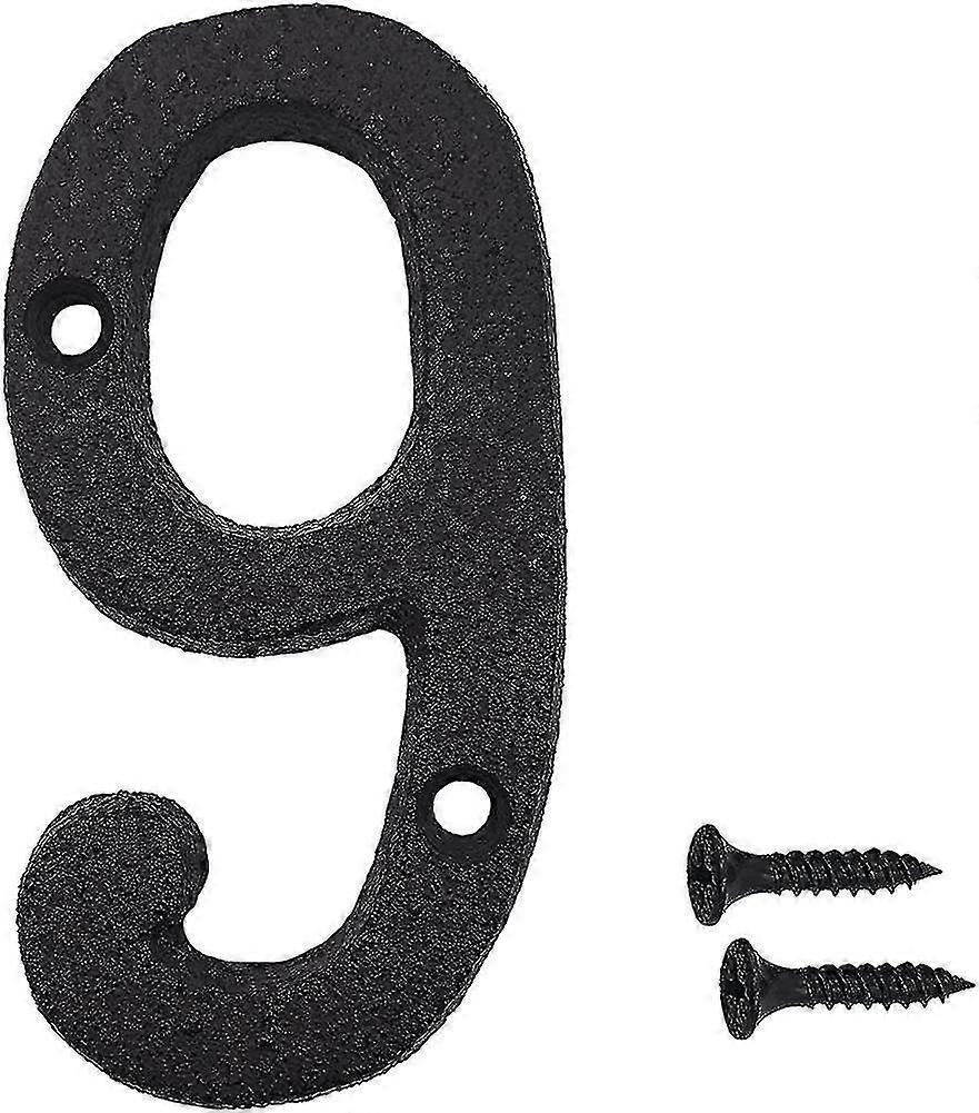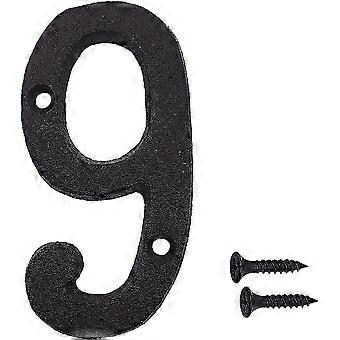 3 Inch Wrought Iron House Number, Matching Screws Included Black Number 9