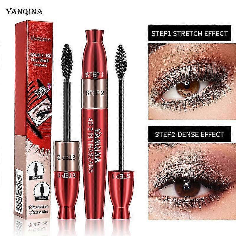 Black Waterproof Mascara, 4D Volume Mascara 2 in 1, Create Eyelash Lengthening Anti-Smudges Long Lasting