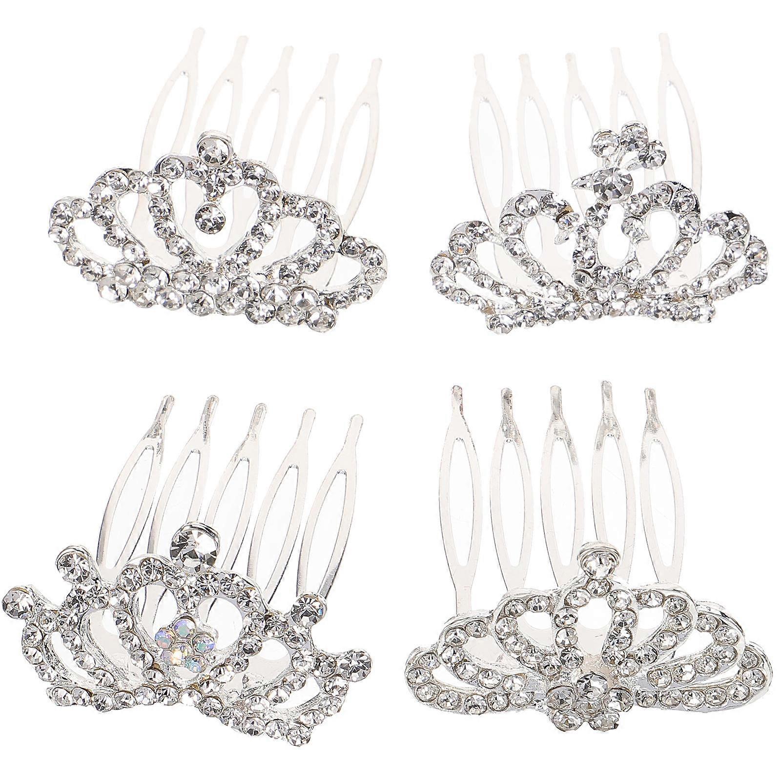 Children Crown Comb for Girls 4Pcs Small Rhinestone Tiara Headdress