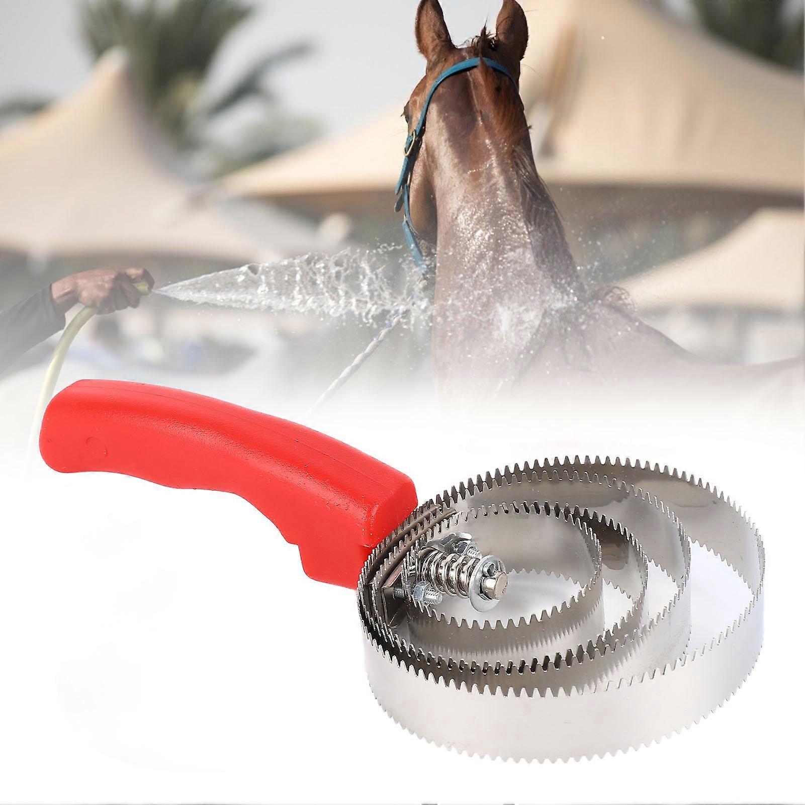 Horse Curry Comb 4 Rings Double Sided Reversible Stainless Steel Horse Curry Comb Horse Brush with Soft Grip for Grooming