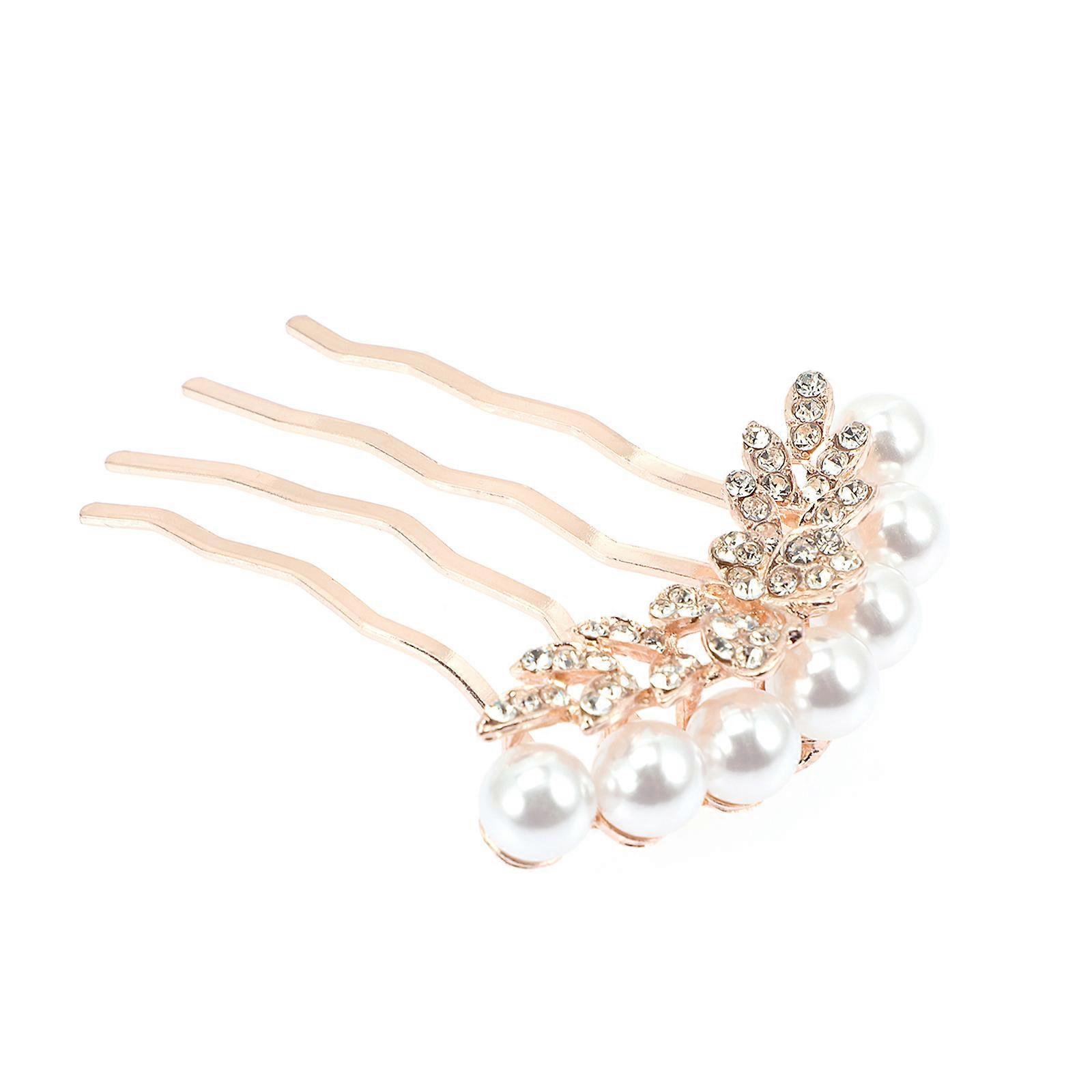 Bride Hair Comb Elegant Design for Weddings 4Pcs Pearl Rhinestone