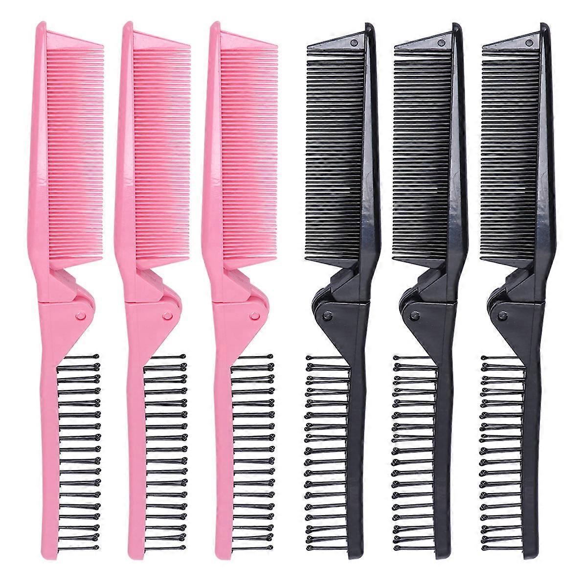 Travel Folding Hair Comb Portable Folding Comb Small Hair Combs Styling Comb Black 21x25cm Abs High Temperature Resistance 6Pcs