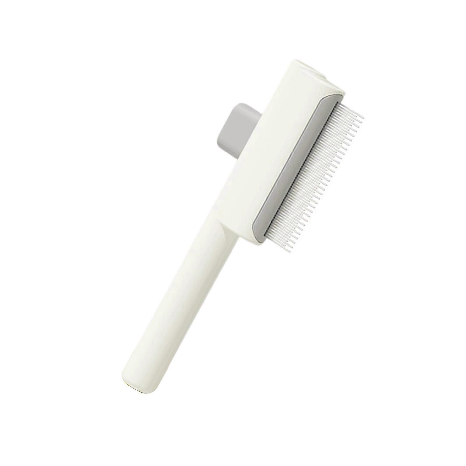 Gentle Pet Hair Comb For Dogs Cats With Release Mechanism Detangling Brush For Shedding Furs Removal Ergonomic Handle White