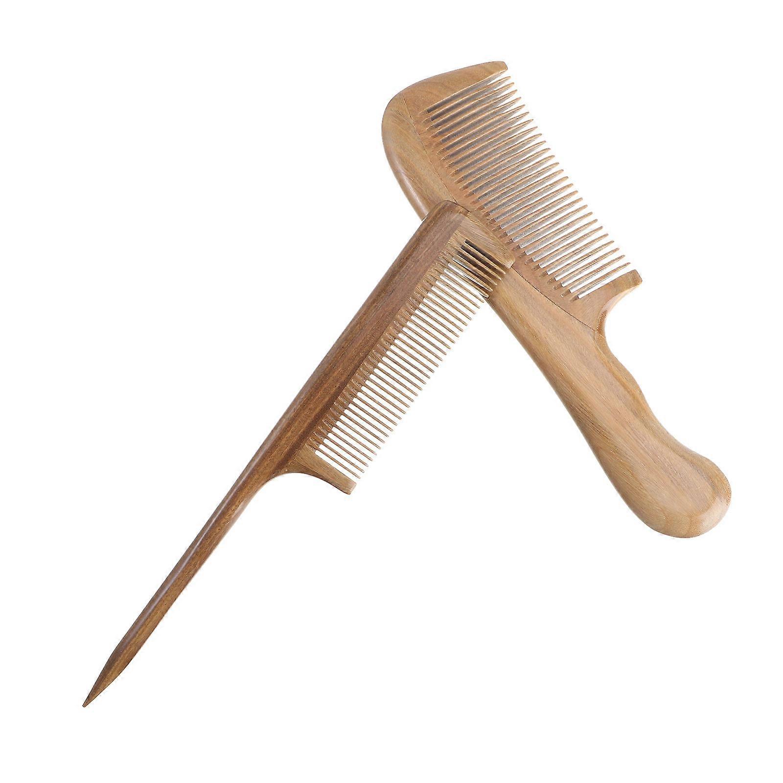 Wide Tooth Hair Comb Natural Sandalwood Comb For Women Detangling Portable 2Pcs