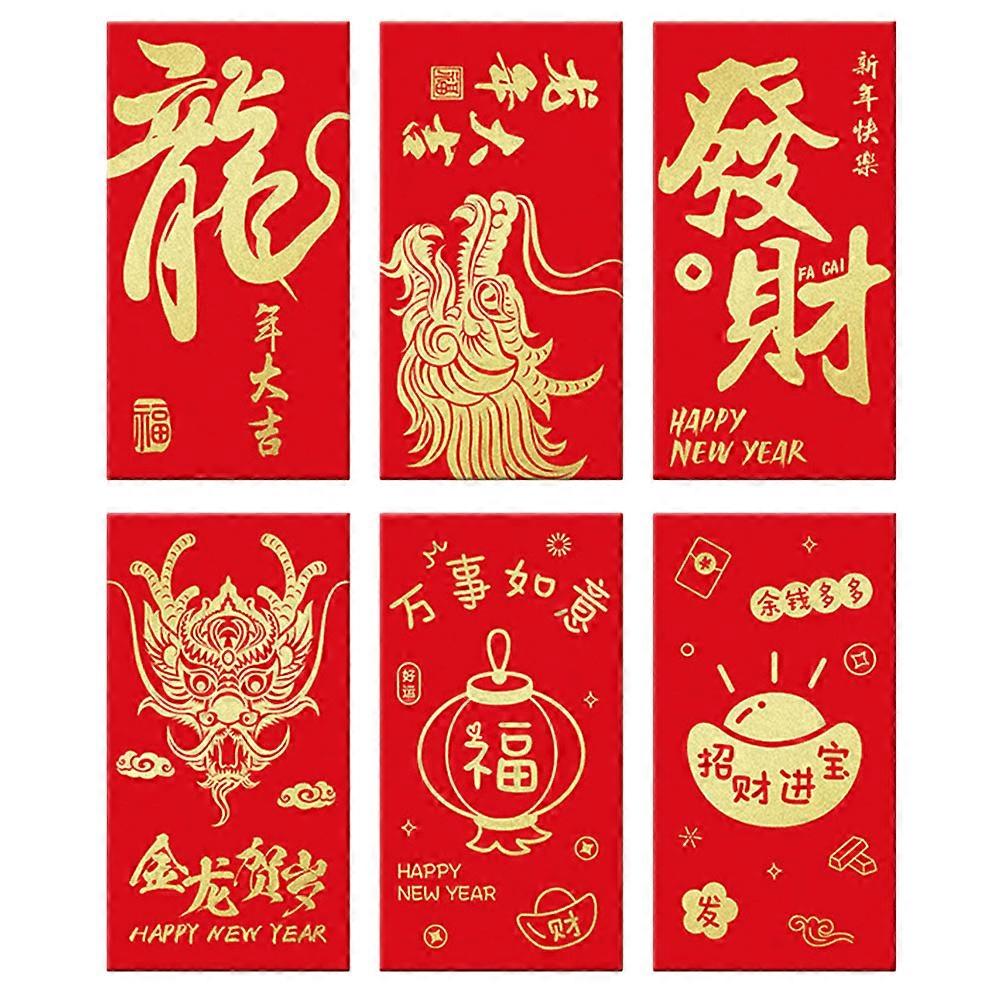 Lucky Money Envelopes Traditional New Year Style Red Packets For present Giving Family Members 6Pcs