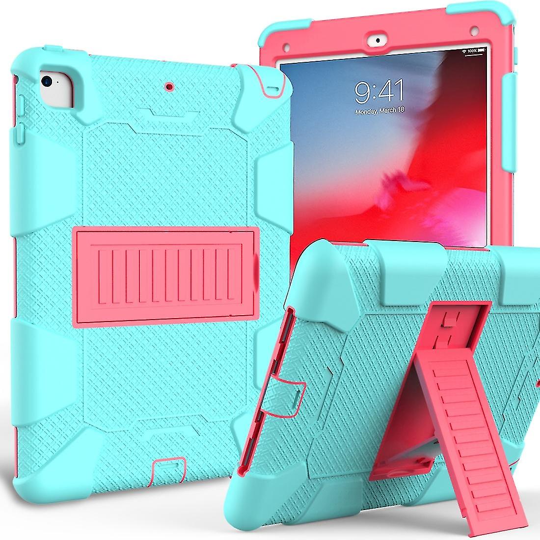 Shockproof Two-color Silicone Protection Shell For Ipad 9.7(2018) & 9.7(2017) & Air 2, With Holder Mint Green Rose Red