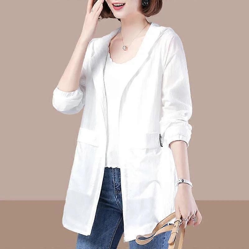 Fashion Hooded Jackets Summer Women Sun-proof Zipper Trench Coats Thin Loose Long Outerwear Breathable Lightweight Clothing