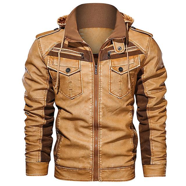 Men's Eather Jackets Winter Fleece Thick Mens Hooded Motorcycle Pu Coa