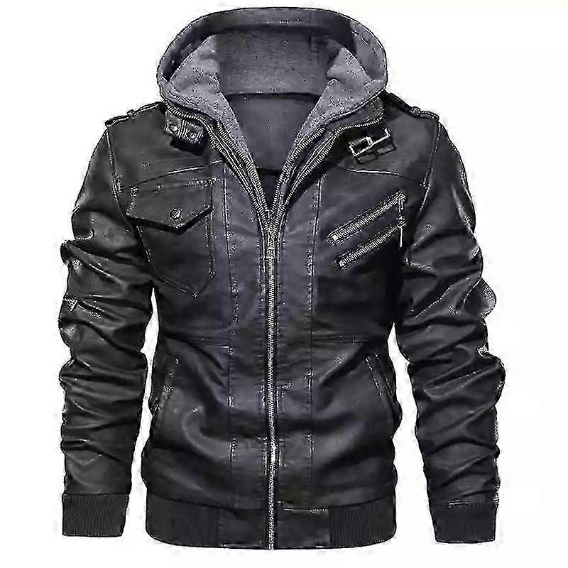 Winter Slim Men's Leather Jackets Male Hooded Fleece Coat Hooded Str 25-26