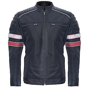 מעיל אופנועני רטרו מפוספסים מעור שחור לגברים
